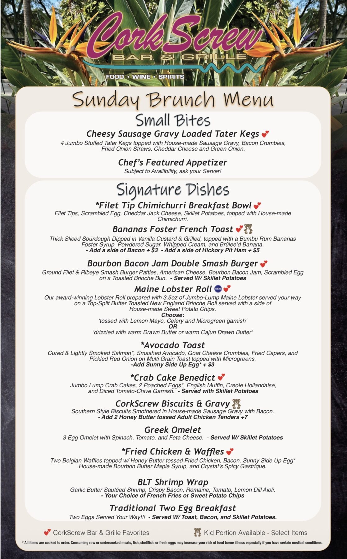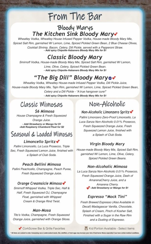 CorkScrew Bar & Grille Menu