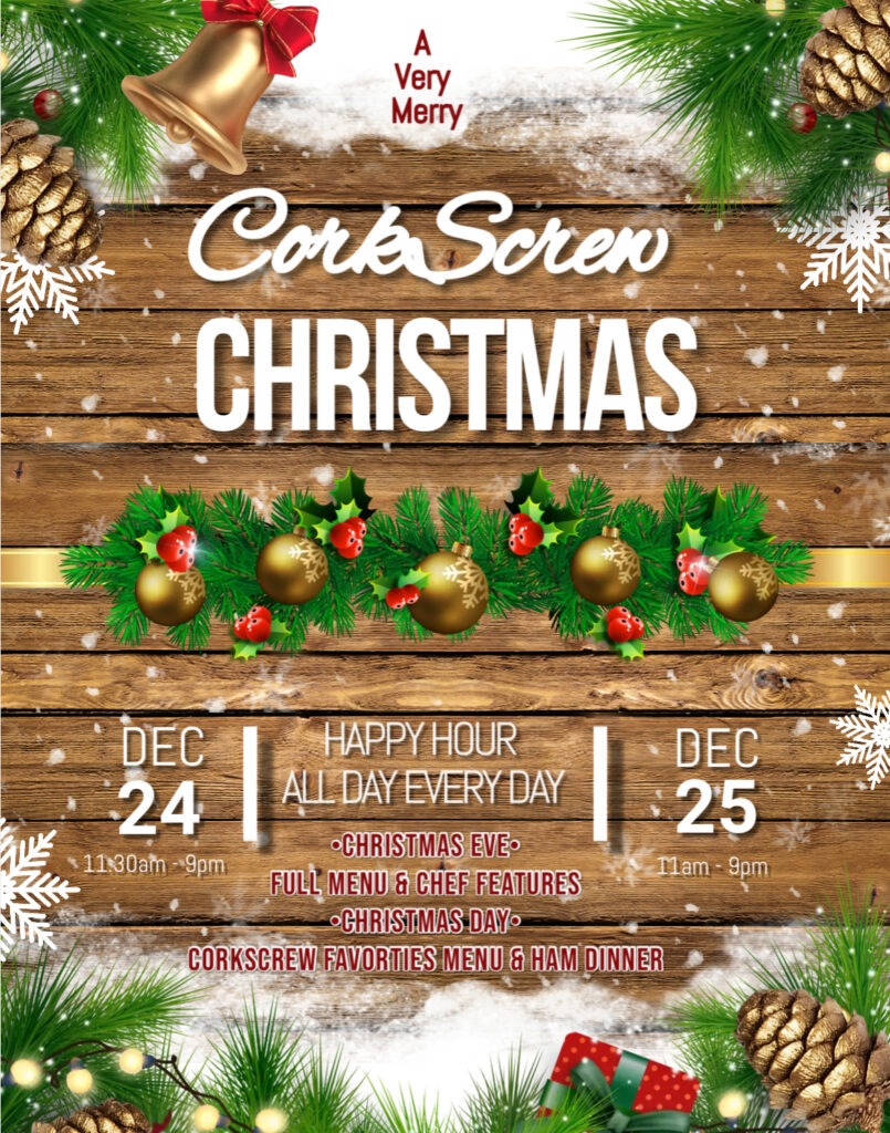 Exclusive Menu will include Chef Created Features, CorkScrew favorites, a traditional ham dinner, full bar and craft cocktails.