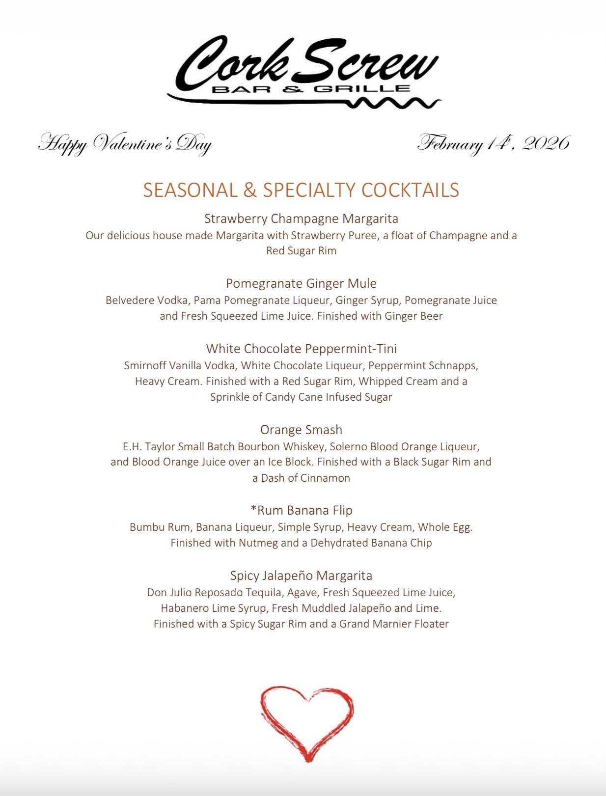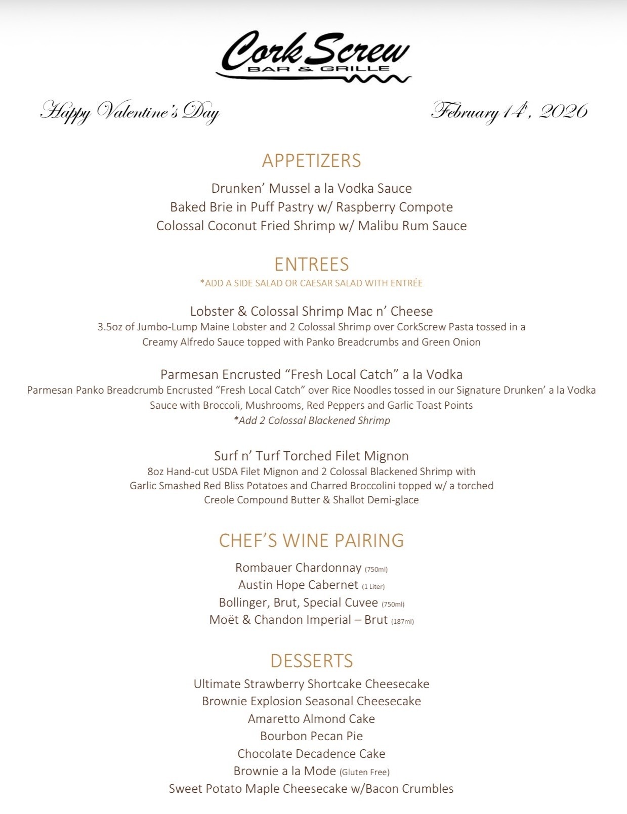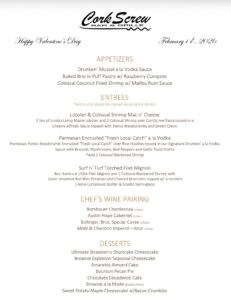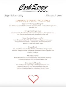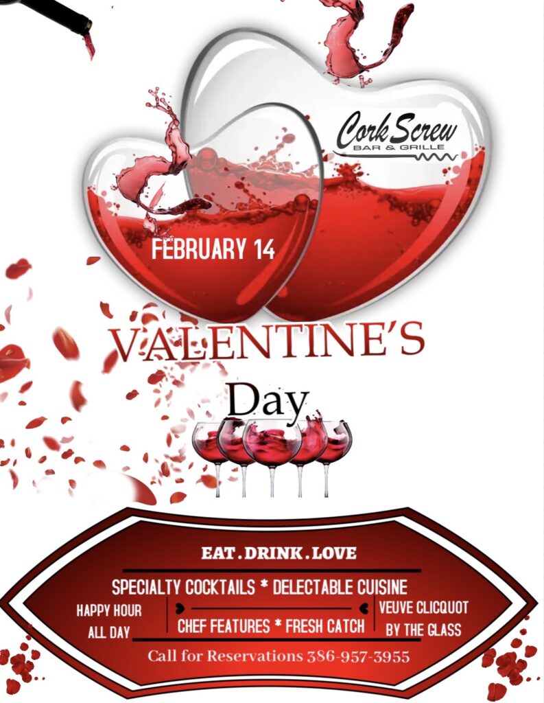 We are now taking reservations for Valentine’s Day. We will have our Full Menu available, Chef created Features, Specialty Cocktails, and Delicious Desserts. We look forward to making beautiful memories!