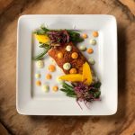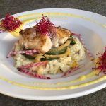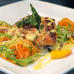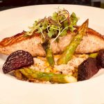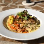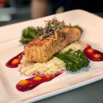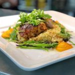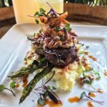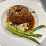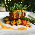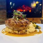Sweet tea brined and served with creamy Gouda Grits, Chef's seasonal vegetable, and an apple cinnamon glaze.