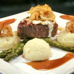 Hand cut in house - USDA Choice Black Angus. Served with roasted shallot demi glace.