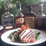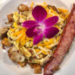 Coffee and brown sugar rubbed on a toasted brioche bun with candied pork belly, grilled pineapple, smoked gouda cheese, and pickled red onion finished with leaf lettuce and sliced tomato.