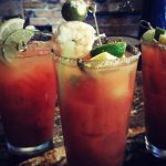 Maple Bacon Bourbon, House Bloody Mary Mix, Spiced Salt Rim, garnished w/ Lemon, Lime, Olive, Celery, Spiced Pickled Green Bean, and Slice of Bacon