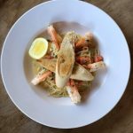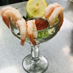 Jumbo white shrimp chilled and presented with cocktail sauce & wedge of lemon.