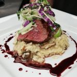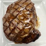 Hand cut in house - 16 oz Florida Cattle Ranchers USDA Choice Ribeye, Served with roasted shallot demi-glace.