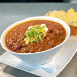 Stoli Vodka, Stoli Jalapeño Vodka, House Bloody Mary Mix, Spiced Salt Rim, garnished w/ Lemon, Lime, Spiced Pickle Green Bean, 2 Blue Cheese Stuffed Olives, Cocktail Shrimp, Bacon, Celery, Dill Pickle, served with a Pepperoni Straw in a Large Goblet