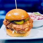 Fried Chicken breast, lemon mayo, shredded lettuce on a Brioche bun served with house made bread and butter pickles.