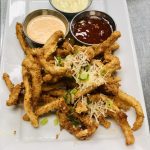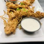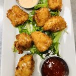 Crispy Cod bites, lightly fried and served with House Remoulade and sweet chili sauce.