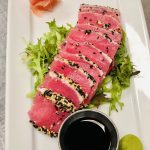 AAA Sushi Grade sesame encrusted with wasabi, pickled ginger and served with soy sauce.