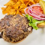 All Burgers prepared with chuck, brisket, short rib blend and served with your choice of French Fries or house made Sweet Potato Chips.