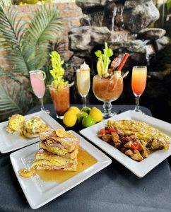 Maple Bacon Bourbon, House Bloody Mary Mix, Spiced Salt Rim, garnished w/ Lemon, Lime, Olive, Celery, Spiced Pickled Green Bean, and Slice of Bacon